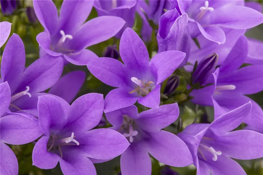Die Glockenblume hat ihren Namen nicht umsonst: sowohl der deutsche als auch der lateinische Name der Pflanze sind auf die Blüten zurückzuführen. Diese sind je nach Art entweder glocken-, röhren- oder sternförmig und blühen weiß oder in jedem erdenklichen Blau- und Violettton. Je nach Art blühen Glockenblumen von Juni bis September. Das macht sie zu einer wahren Bereicherung für jeden Garten im Sommer. Und jeder Garten bedeutet wirklich jeder Garten: Glockenblumen wachsen in Beeten, auf Freiflächen, in Steingärten oder auf Mauerkronen. Es gibt keine Art der Glockenblume, die nicht zu einem bestimmten Standort passt.