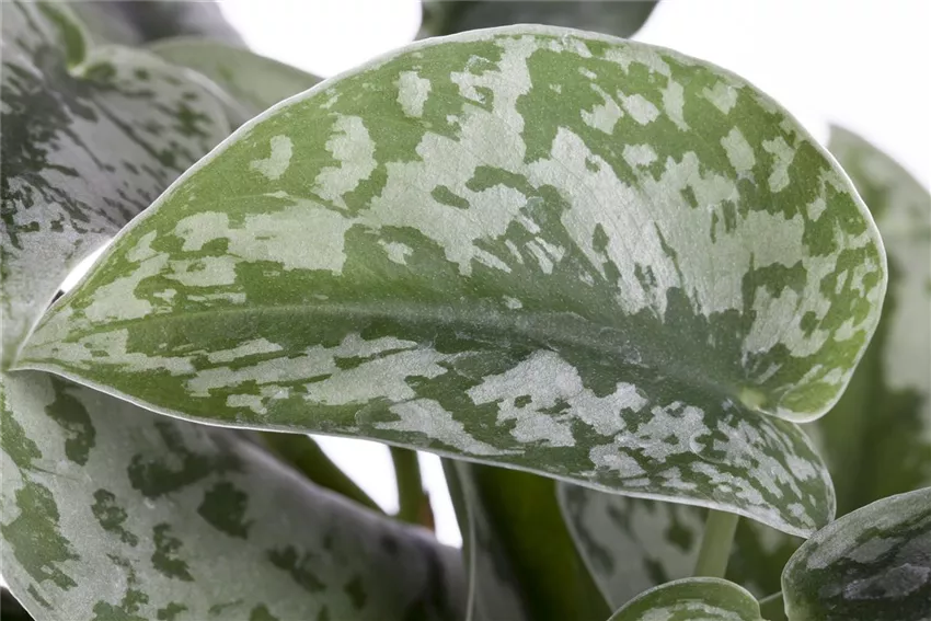 Die Blätter der Efeutute können in vielerlei Färbung daherkommen. Von Naturweiß über Gelb und smaragdgrün bis hin zum goldenen oder silbernen Schimmern bietet sie fast alles, was das Botanikerherz begehrt. Steht der Topf mit der Efeutute am Treppenabsatz, so kann man sicher sein, dass sie innerhalb der nächsten Monate das Treppengeländer erobern und emporklettern wird. Deshalb ist sie auch eine der beliebtesten Rankpflanzen.