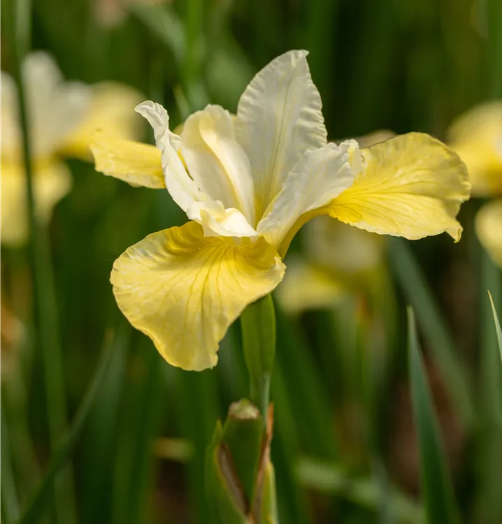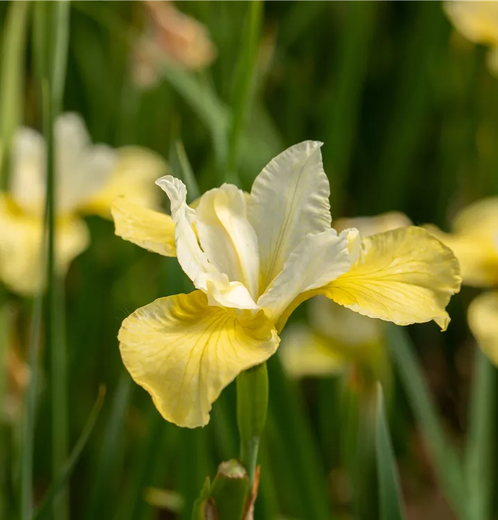 Iris sibirica 'Butter and Sugar' bildet hellgelbe Blüten ab Mai.