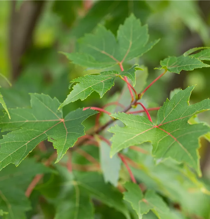 Die sommergrünen Blätter des Rotahorns 'Autumn Blaze'® sind mittelgrün, tief geschlitzt, gegenständig, gelappt. Rotahorn 'Autumn Blaze'® zeigt sich leuchtend rot-orange im Herbst.