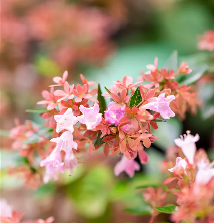 ‘Autumn Festival’ ist eine kompakt wachsende, reichblühende Sorte der Chinesischen Abelie mit außergewöhnlich langer Blütezeit. Von Juli bis weit in den Oktober hinein erscheinen unzählige kleine, glockenförmige, zartrosa Blüten, die einen angenehmen Duft verströmen und Bienen wie Schmetterlinge anziehen. Das glänzend dunkelgrüne Laub zeigt im Herbst eine attraktive rötliche Tönung, die der Sorte ihren Namen verleiht.