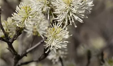 Der Große Federbuschstrauch (Fothergilla major) ein buschiger, aufrechter Strauch, der, je nach Sorte, Blüten in verschiedenen Farben hervorbringt. An einem sonnigen bis halbschattigen, windgeschützten Standort mit humosem, sandigem, saurem Boden erreicht er gewöhnlich eine Höhe von ca. 3 m und wird ca. 2 m breit.