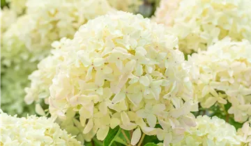 Die cremeweißen Blüten der Rispenhortensie 'Whitelight'® erscheinen in Rispen von Juli bis September. Diese sind angenehm duftend.