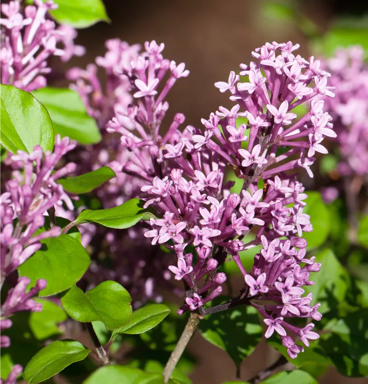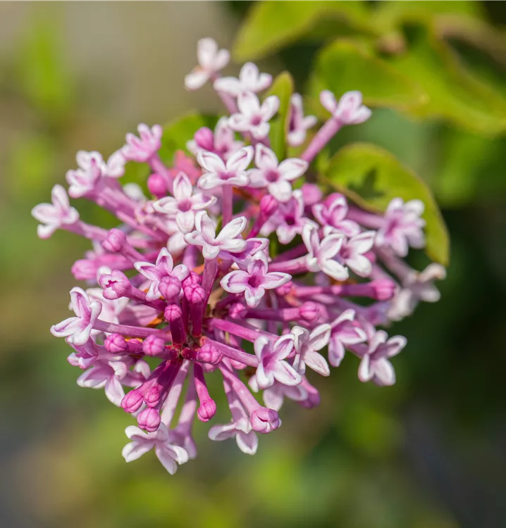 Die lilafarbenen Blüten des Meyer's Flieder erscheinen in Rispen von Mai bis Juni. Diese sind stark duftend.