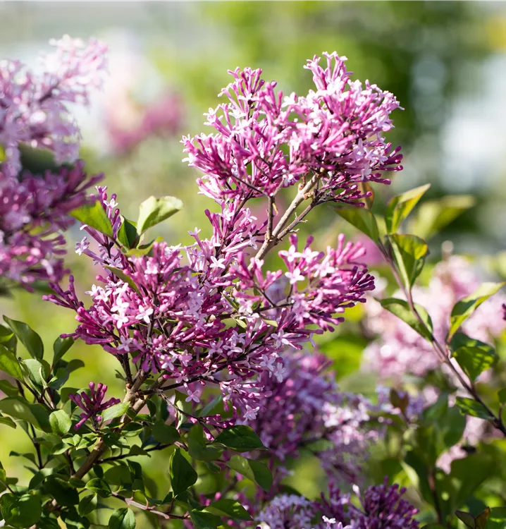 Auch in einem kleinen Garten oder auf Balkon und Terrasse kann mit Meyer`s Flieder "Palibin" Fliederduft in der Luft liegen. Dieser Zwergflieder benötigt nur wenig Platz und stellt kaum Ansprüche. Dafür wird das kompakte Ziergehölz Sie mit seinen zahlreichen violetten und stark duftenden Blüten erfreuen. Die Rispenblüten zeigen sich von Mai bis Juni, im Herbst gibt es meist eine reichliche Nachblüte. Sorgen Sie mit dieser pflegeleichten Pflanze für einen Farbtupfer. Meyer`s Flieder "Palibin" ist auch für Stadtgärten geeignet und absolut winterhart.