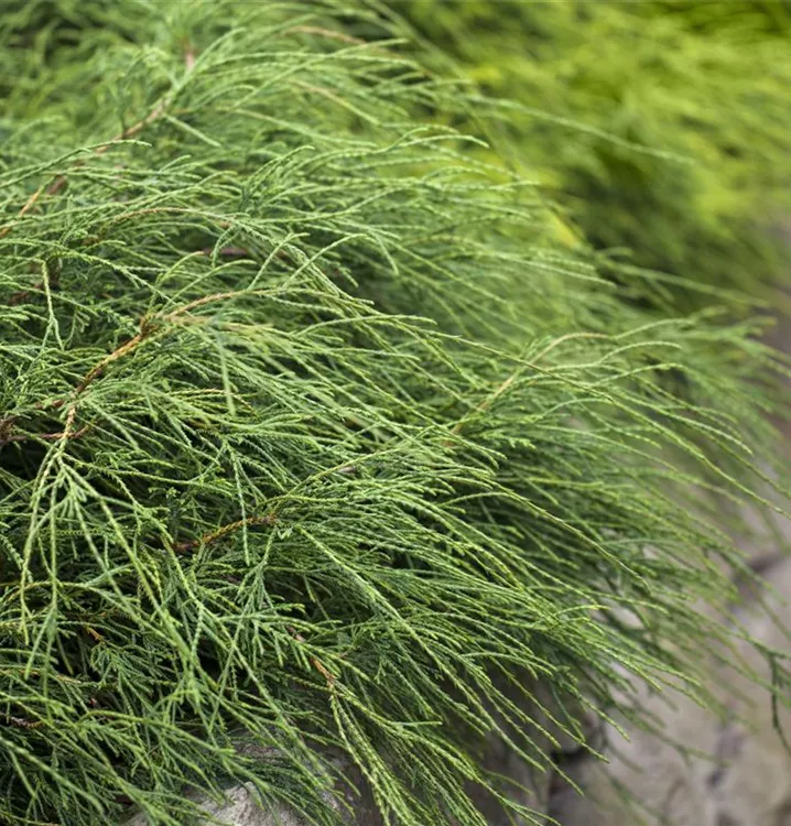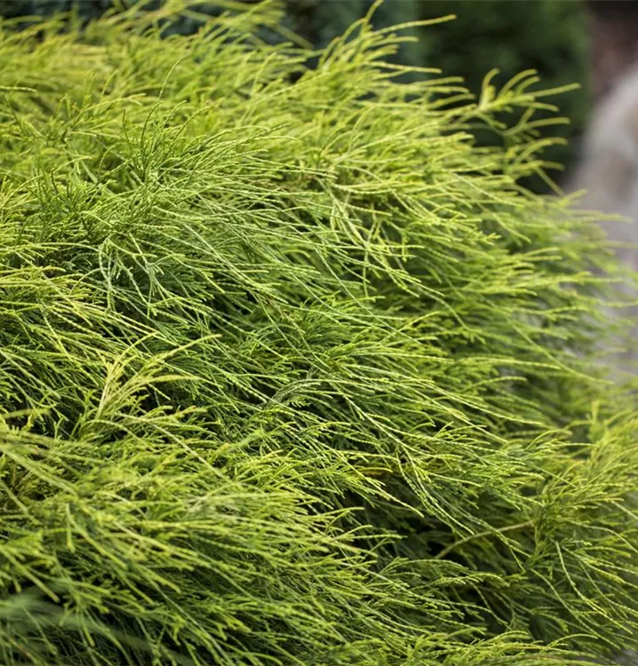 Sehr dekorativ. Die Grüne Fadenzypresse 'Filifera Nana' ist immergrün. Ihre Nadeln sind gelb-grün, weich.