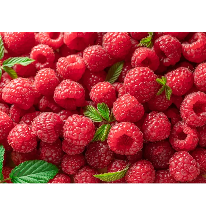 Die Himbeere 'Saxa Record' (Rubus idaeus) bildet rote Beeren. Diese sind aromatisch, süß im Geschmack. Saxa Rekord ist eine klassiche, bewährte Sommersorte, also ideal wenn man eine größere Menge Himbeeren für Kuchen, Marmeladen oder zum Einfrieren ernten möchte.