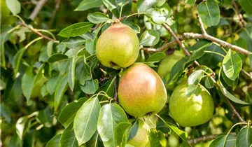 Nicht nur die Sommerbirne, auch die Winterbirne ist sehr wohlschmeckend. Für jede Obstwiese ist sie eine unentbehrliche Ergänzung. Sie wird mit 4 Metern noch etwas kleiner als die sommerliche Birnenvariante, und sie ist gelblich-grün gefärbt. Doch an Robustheit steht sie der Sommervertreterin in nichts nach. Allerdings gibt sie ihre Früchte nicht schon im Sommermonat Juli, sondern erst im Oktober preis. Ihr orange-gelbes Laub ergänzt die Farbpalette des Herbstes zur Freude des Garteninhabers.