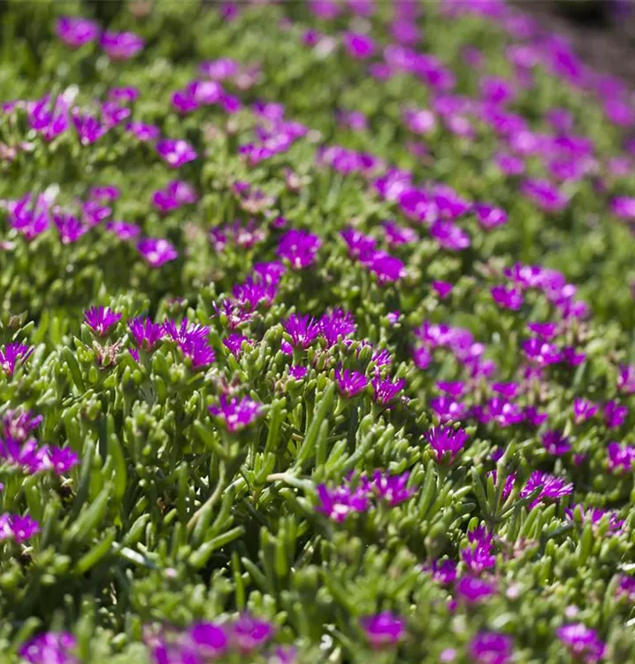 Delosperma sutherlandii bildet strahlenförmige, körbchenartige, violette Blüten ab Mai.