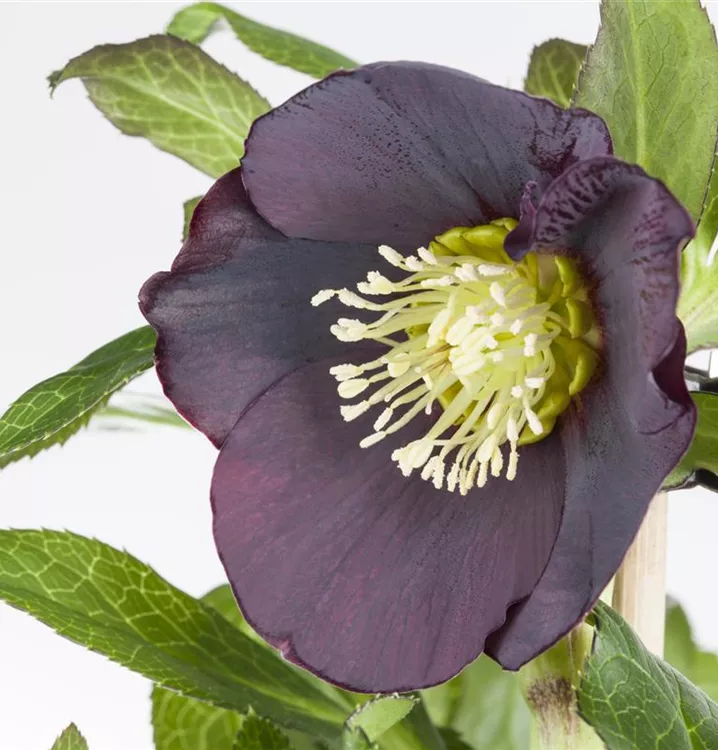Helleborus orientalis 'Blue Lady' bildet schalenförmige, dunkelblaue Blüten ab Januar.