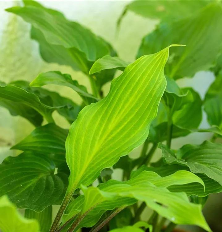 Hoher Blattschmuckwert. Die sommergrünen Blätter der Lanzen-Funkie sind mittelgrün, lanzettlich, glänzend, grundständig, ganzrandig.